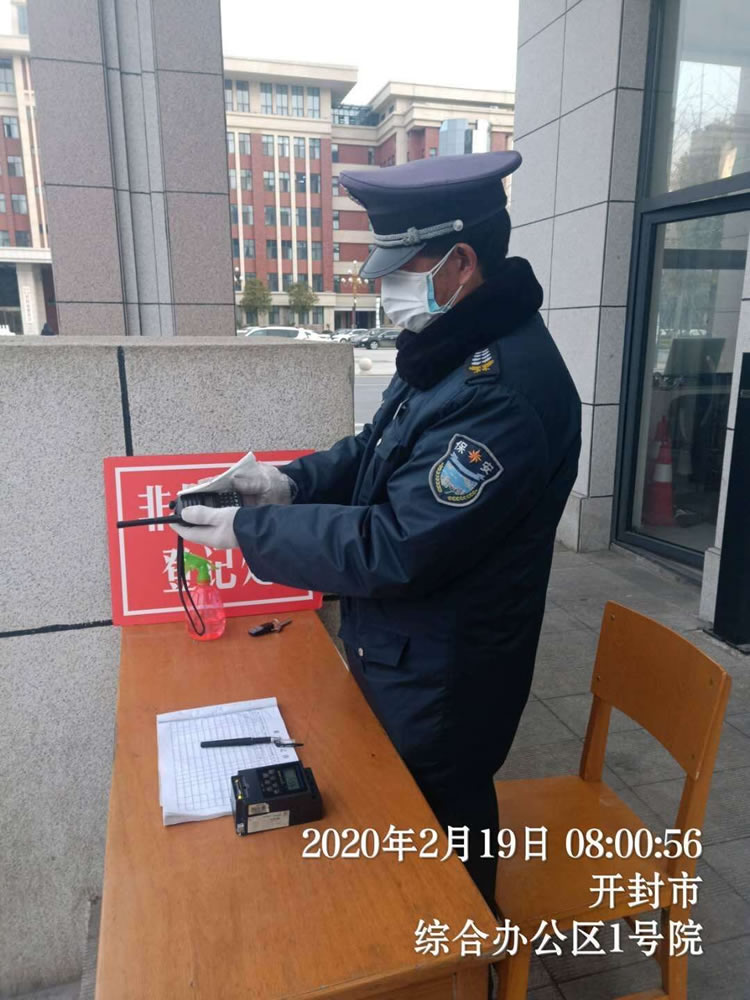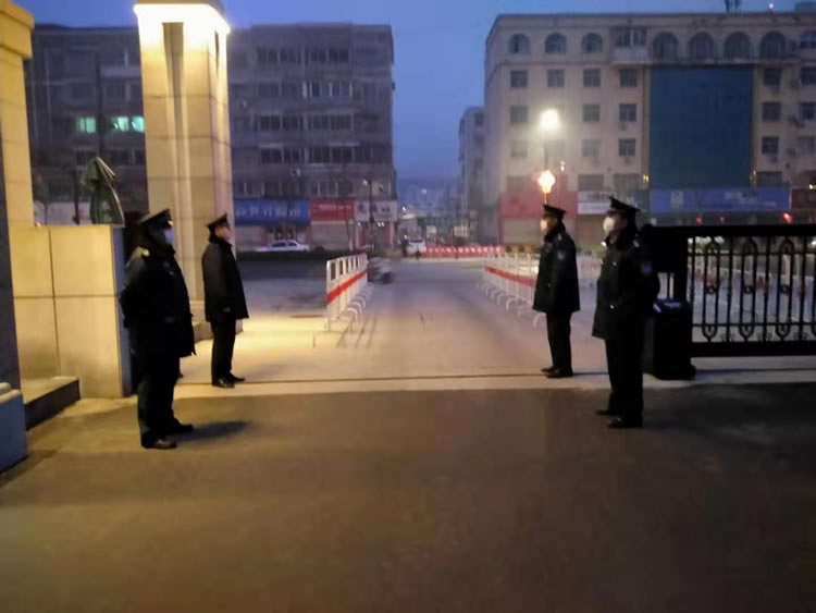 1、駐市委市政府崗點的保安員們,精準實測,科學防控。綜合辦公區(qū)、人大、政協(xié)等崗位每天堅持對全員進行崗前動員、疫情防控知識培訓,重點部位嚴格檢查等工作部署。在安保消防工作中:做到消防安全標準不降低,以“防消結(jié)合”為目標,人防技防相結(jié)合,加大巡查力度,堅決預防火災事故發(fā)生;消控室值班人員堅守崗位,做到遇有突發(fā)事件及時上報及時處理。各門崗及崗點安保工作:由于來往市委、市政府辦公的人員涉及各個行業(yè)和不同領(lǐng)域,人員眾多、成分復雜,疫情傳染幾率高,工作任務重。但這些困難和問題沒有讓這里的保安隊員們畏懼和退縮,反而,職業(yè)的責任感和光榮感,使他們增加了戰(zhàn)勝困難的決心和信心。隊員每天7點到21點超長堅持工作,一方面堅持對值班室及防控區(qū)域的消毒,自身防護,同時堅持對進入的車輛和人員消毒、登記、體溫測量、查驗證件等工作,科學防控。疫情期間,無論疫情與天氣,堅持每日按時升掛國旗,展示了機關(guān)大院的良好形象。