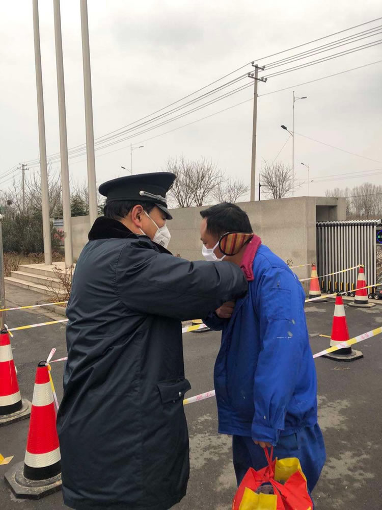 除夕夜,公司派駐到曹門派出所巡防員蔡俊寶,配合民警對轄區(qū)三名由武漢返汴的大學生開展疫情線索核查,確保不漏查一個疫區(qū)返回人員,當把*后一名疫區(qū)返回人員情況落實清楚后,已是農(nóng)歷大年初一的凌晨,新年的鐘聲已敲響。凌晨時分,蔡俊寶顧不上休息,又趕到白衣閣參與到除夕夜“禁燃燒、防聚集”的執(zhí)勤中,他一直堅守在執(zhí)勤崗位上。正月初一一大早,蔡俊寶又配合民警董現(xiàn)禮參與到新一輪的疫情線索核查中,直到下午2點兩人才回到派出所吃上一碗早已放涼的餃子。疫情無情人有情,他們始終把困難群眾掛記在心中。大年初三一早,蔡俊寶和民警董現(xiàn)禮一起為困難群眾馬某和薛某購買了雞蛋、方便面等送到家中。