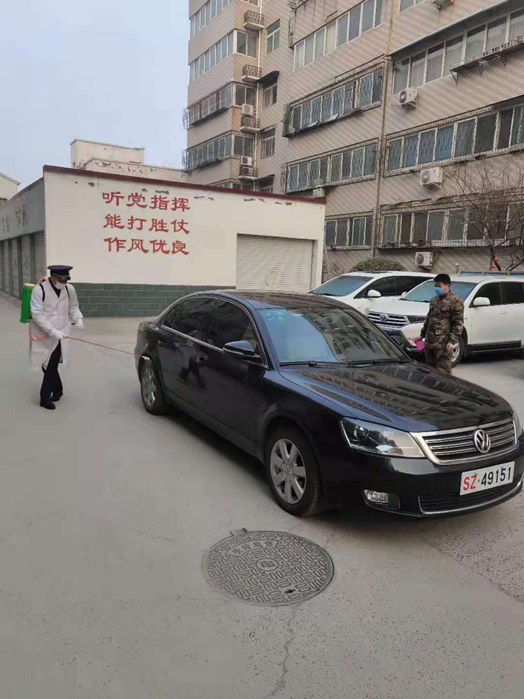 5、河南省軍區(qū)開封離職干部休養(yǎng)所崗點的保安員盡職盡責。接到防疫任務后,保安員實行全封閉管理,隊員24小時堅守崗位,嚴格控制進出人員,承擔著出入人員體溫測量、車輛消毒、軍干所場所的消毒任務,并做好登記工作。