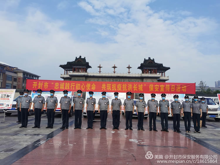 2020年7月24日上午,開封市保安服務(wù)有限公司按照開封市公安局的部署,在金明池廣場積極組織開展全國保安行業(yè)“忠誠踐行初心使命、共筑抗疫抗洪長城”為主題的宣傳活動(dòng)。