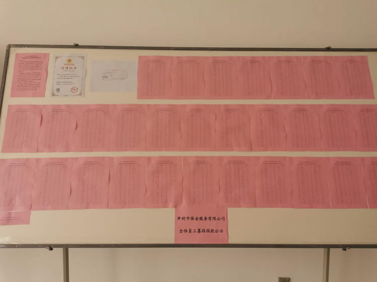 疫情無情,人間有愛;一方有難,八方支援。本次募集的所有善款及時向全體員工公示,主動接受財政、審計、紀(jì)檢部門及新聞媒體等社會的監(jiān)督,確保??顚S?。開封市保安服務(wù)有限公司將持續(xù)關(guān)注疫情情況,同全國人民攜手一心,共同打贏這場疫情防控阻擊戰(zhàn)!